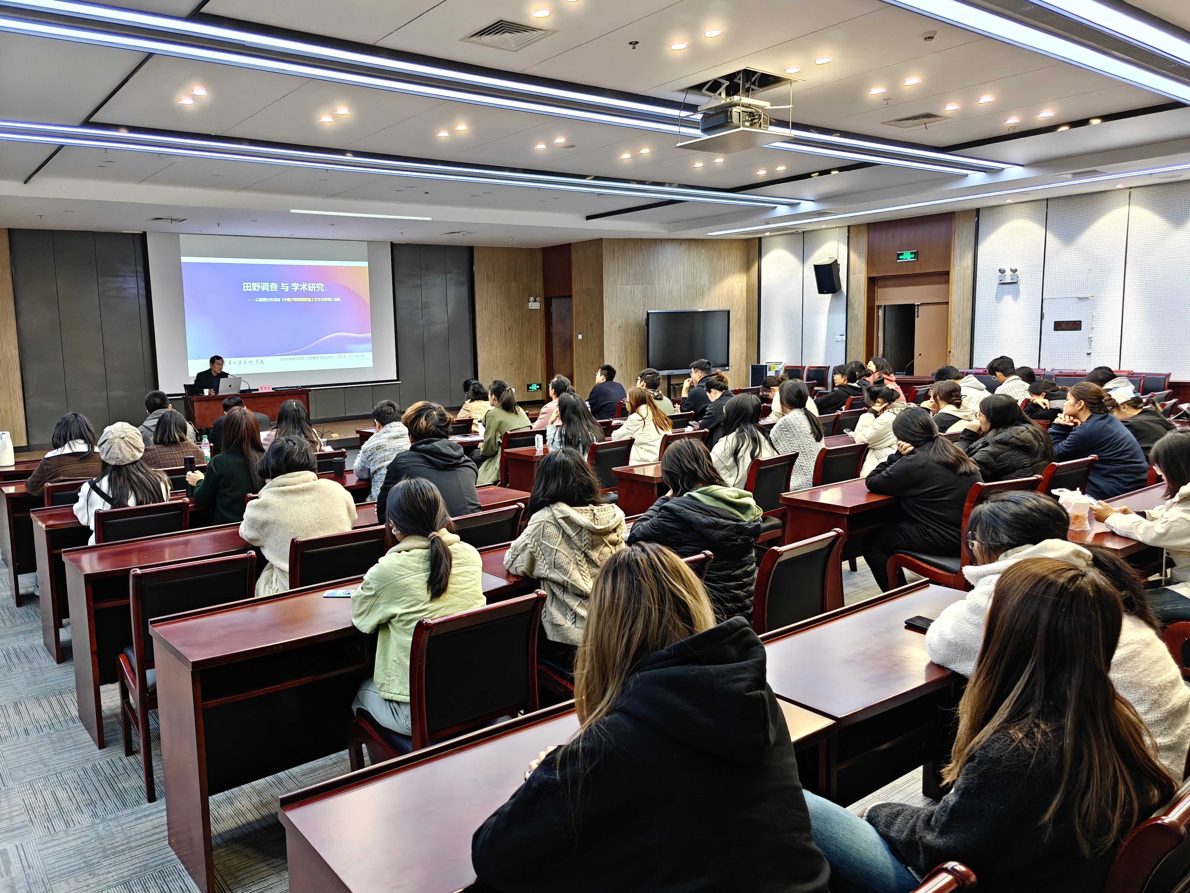 为进一步加强学院科学研究能力,扎实做好传媒与艺术学院2025年度国家社科基金申报工作,进一步调动我院全体教师申报积极性,提高申报质量,2024年11月21日下午,传媒与艺术学院特邀全国艺术科学规划项目专家库专家;教育部人文社科项目评审、项目结题评审专家;教育部学位与研究生教育发展中心博士论文评审专家清华大学贾京生教授作“田野调查与学术研究”专题讲座。