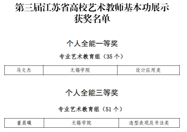喜报|无锡学院传媒与艺术学院教师在第三届江苏省高校艺术教师基本功展示活动中斩获佳绩