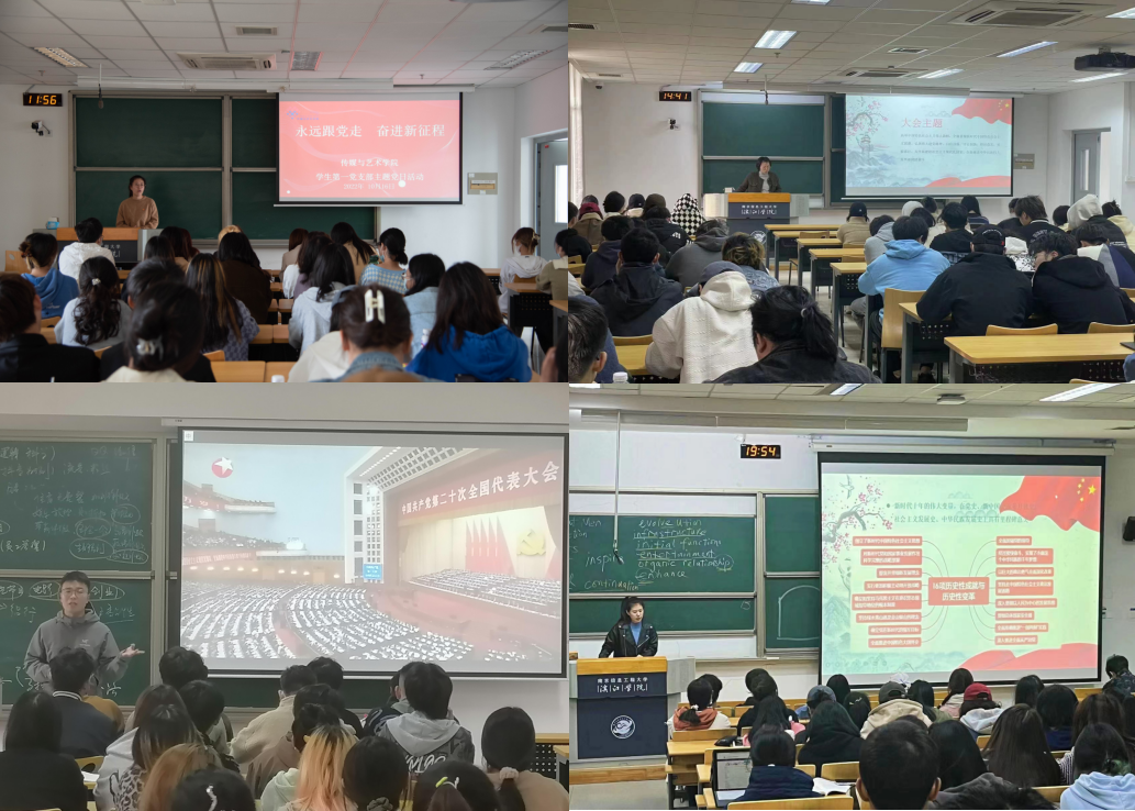 为深入学习宣传贯彻党的二十大精神,深刻领悟“两个确立”的决定性意义,增强“四个意识”、坚定“四个自信”、做到“两个维护”,传媒与艺术学院党总支近期根据上级要求、结合专业特色,组织学生党员、入党积极分子、学生骨干、各年级学生通过线上线下相结合的方式开展党的二十大精神主题系列学习。