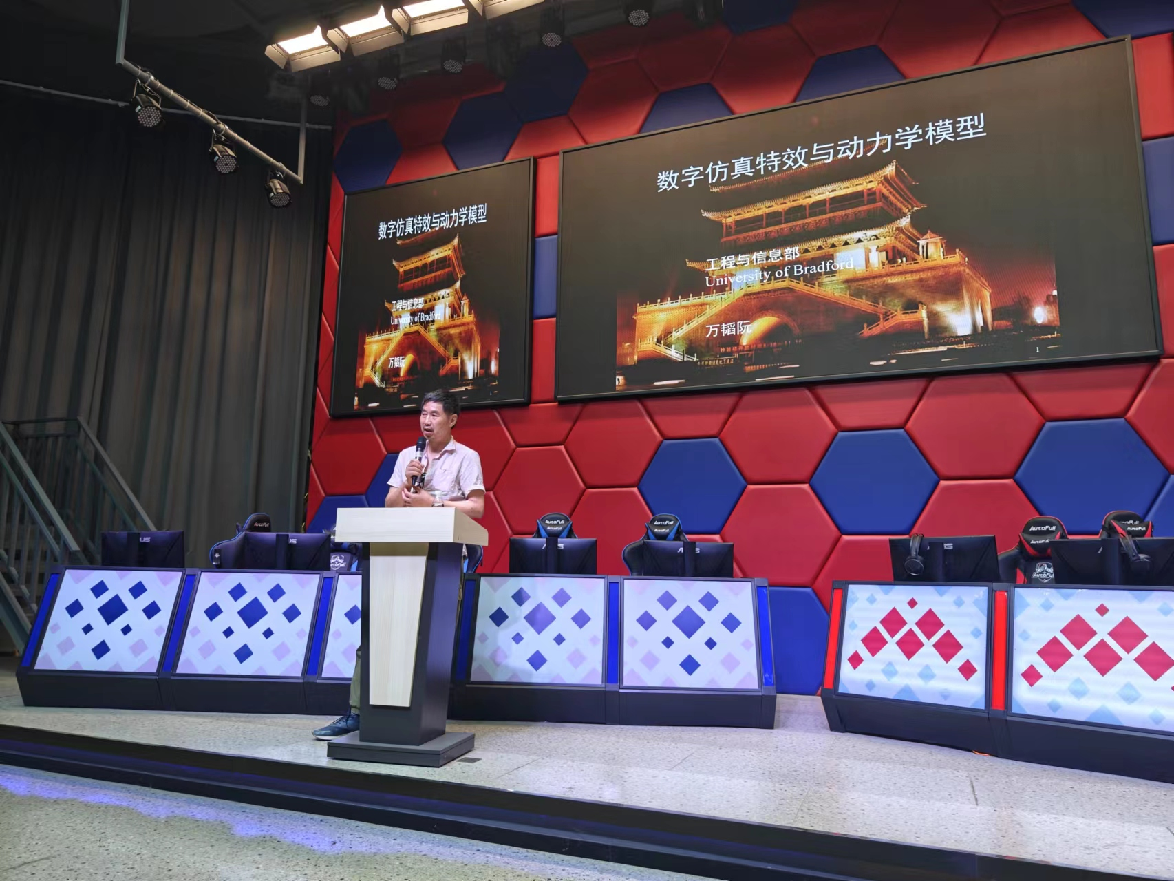 2023年6月13日-2023年6月15日,由我院组织的《数字仿真特效与动力学模型》、《扩展虚拟现实与人工智能》主题讲座在传媒与艺术学院诚楼电竞馆举行。讲座邀请英国Bradford大学万韬阮教授和英国Bournemouth大学汤汶教授进行前沿技术分享,讲座内容涵盖国际最前沿的特效在数字媒体、影视特效、动画、VR/AR中的应用和国际最前沿的XR技术和跨学科应用,人工智能和数字媒体技术。