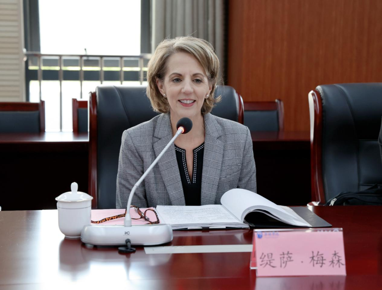 Tisa Mason校长对我校的热情接待表示衷心感谢,并对无锡学院各项事业取得的成绩表示诚挚祝贺。她简要介绍了富特海斯州立大学的办学历程、学生培养以及与中国高校的合作交流情况。她表示,富特海斯州立大学与中国合作办学已有二十余年,渊源深厚,与我校共同举办数字媒体艺术专业本科教育项目合作成果显著,共同培养国际化人才。她希望今后双方能够继续加强互访交流,创造更多合作新途径,拓展更新更宽的合作领域,促进两校共同发展。